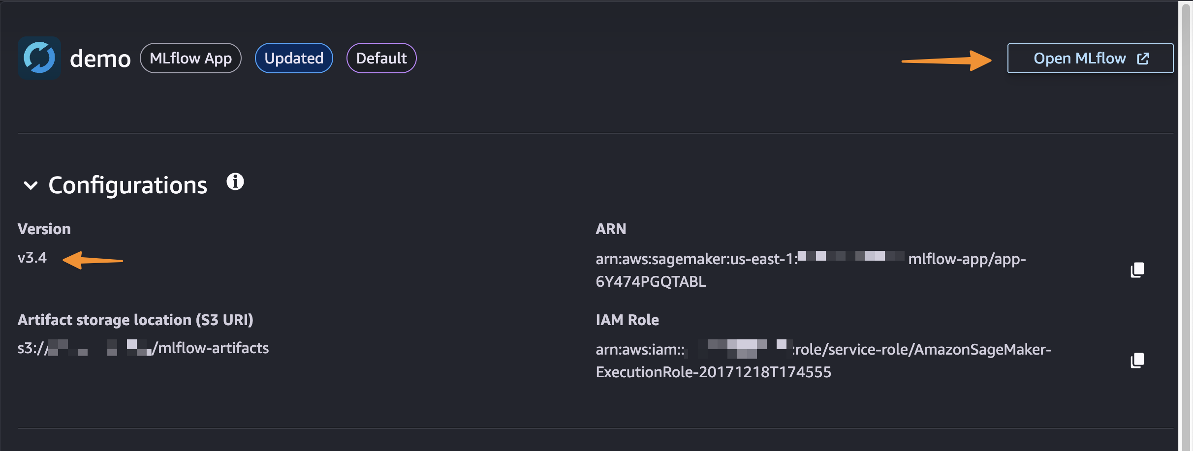 - Automatic upgrades: MLflow in-place version upgrades happen automatically, providing access to the latest features without manual migration work or compatibility concerns. The service currently supports MLflow 3.4, providing access to the latest capabilities including enhanced tracing features.
