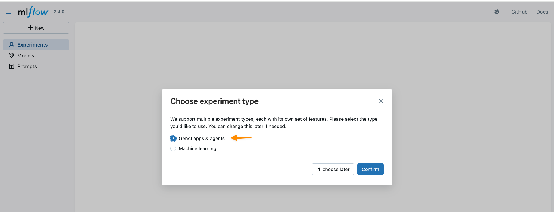 Here, I can see there’s already a default MLflow App created. This simplified MLflow experience makes it more straightforward for me to start doing experiments.
