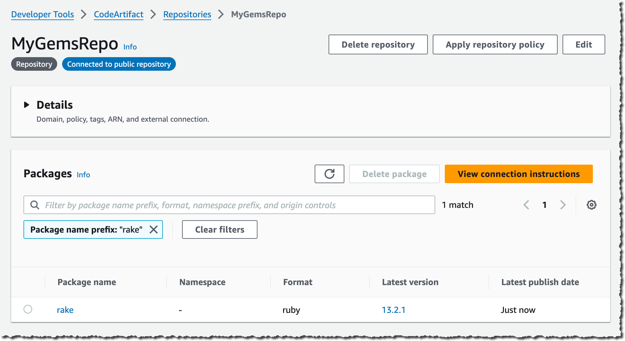 Now, go build your Ruby applications and upload your private packages to CodeArtifact!