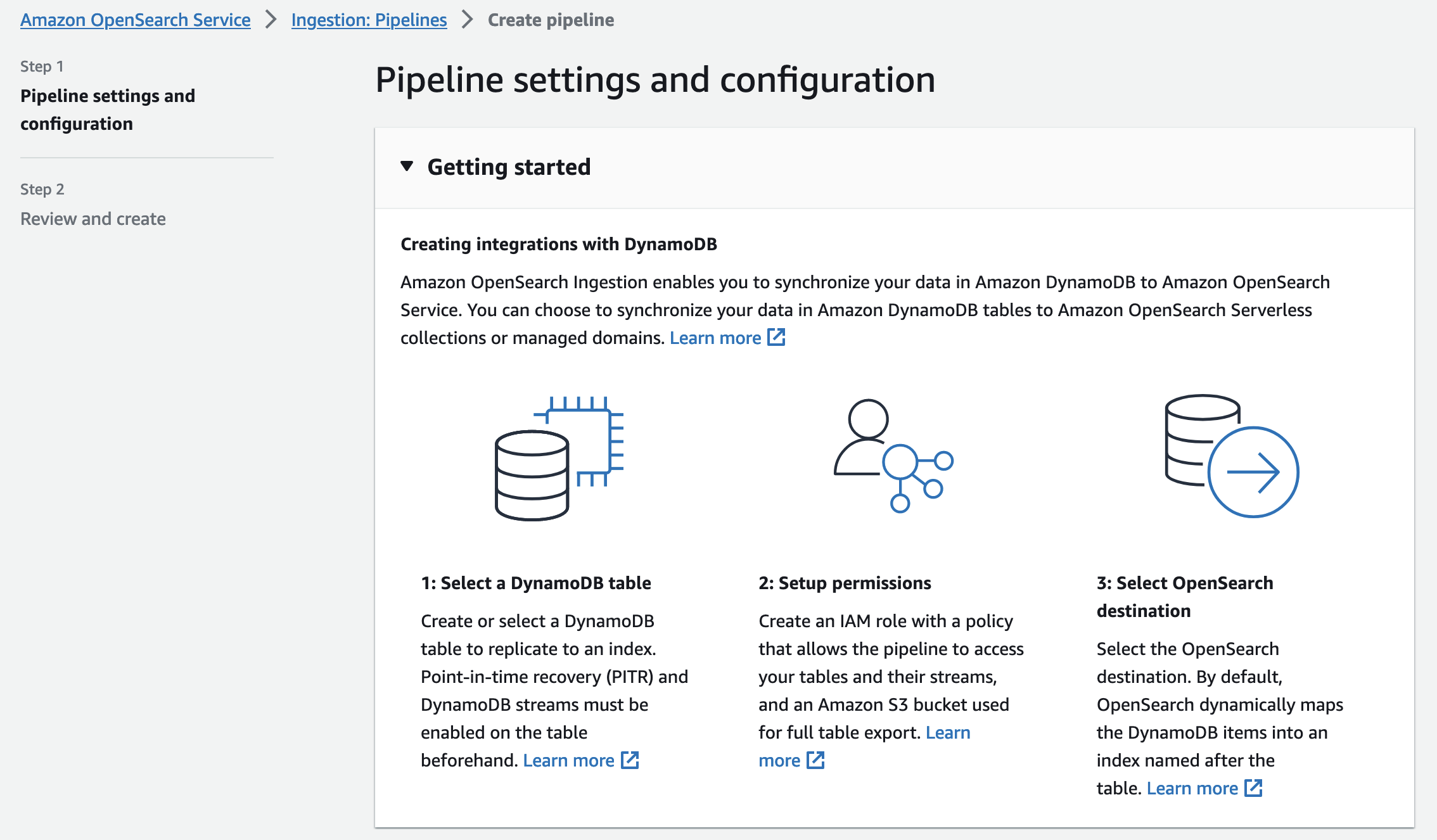 To learn more, see DynamoDB zero-ETL integration with Amazon OpenSearch Service and Using an OpenSearch Ingestion pipeline with Amazon DynamoDB in the AWS documentation.