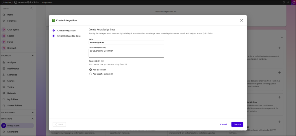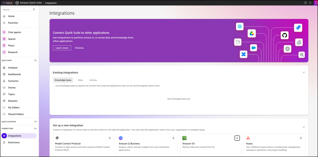 For the walkthrough in this post, I’ll integrate with Quick Suite.
