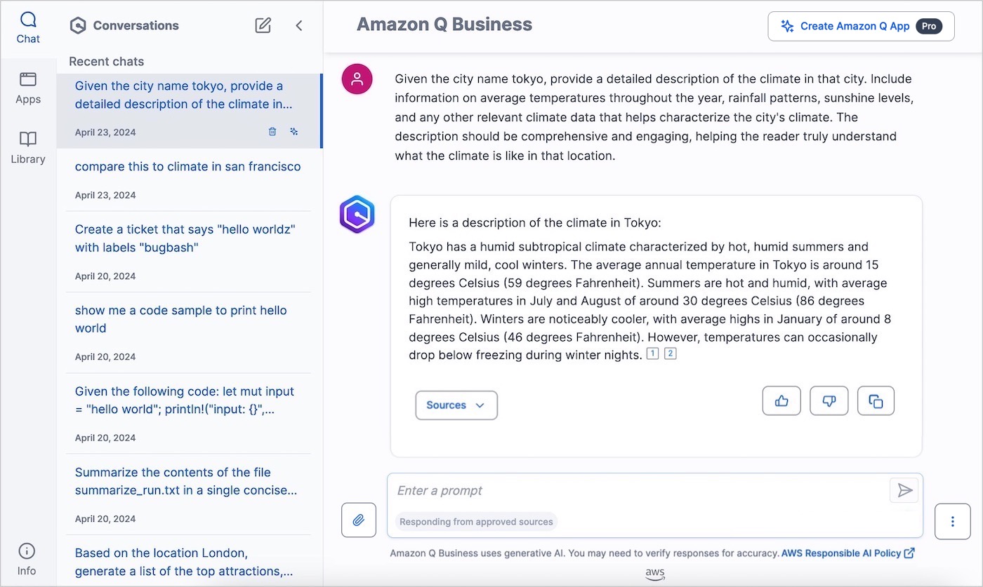 In this blog post, I will briefly introduce the key features of Amazon Q Business with the new features now available and take a look at the features of Amazon Q Apps. Let’s get started!