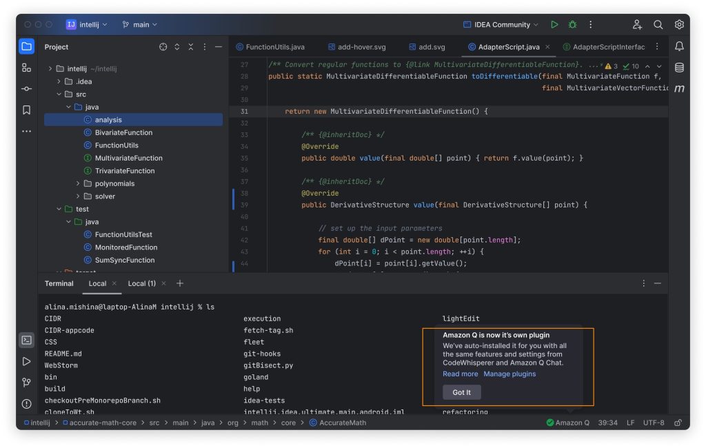 For existing users, you will need to update the AWS Toolkit extension in your IDEs. Once you’ve finished the update, if you have existing Amazon Q and Amazon CodeWhisperer connections, even if they’re expired, the new Amazon Q extension will be automatically installed for you.