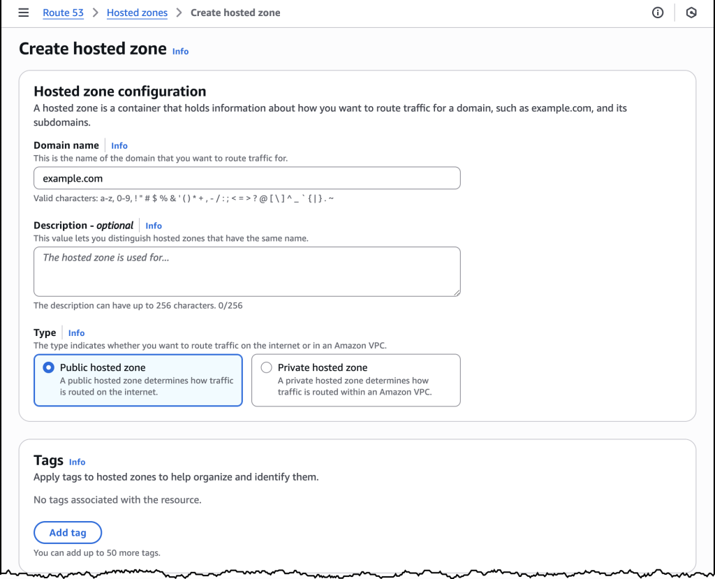 Configuring a Route53 hosted zone to use accelerated recovery is simple. Here I am creating a new hosted zone for a new website I’m building.