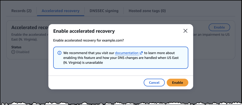 With accelerated recovery enabled, customers gain several key capabilities during service disruptions. The feature maintains access to essential Route 53 API operations, ensuring that DNS management remains available when it’s needed most. Organizations can continue to make critical DNS changes, provision new infrastructure, and redirect traffic flows without waiting for full service restoration.
