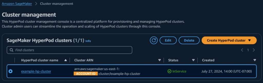 "ClusterArn": "arn:aws:sagemaker:us-east-2:ACCOUNT-ID:cluster/wccy5z4n4m49"