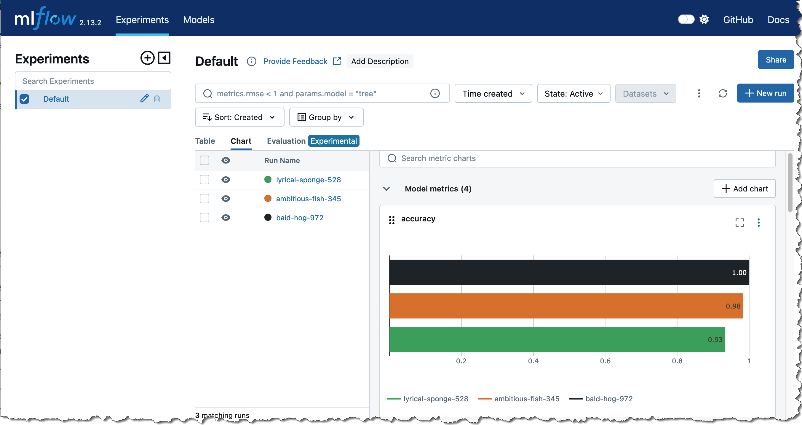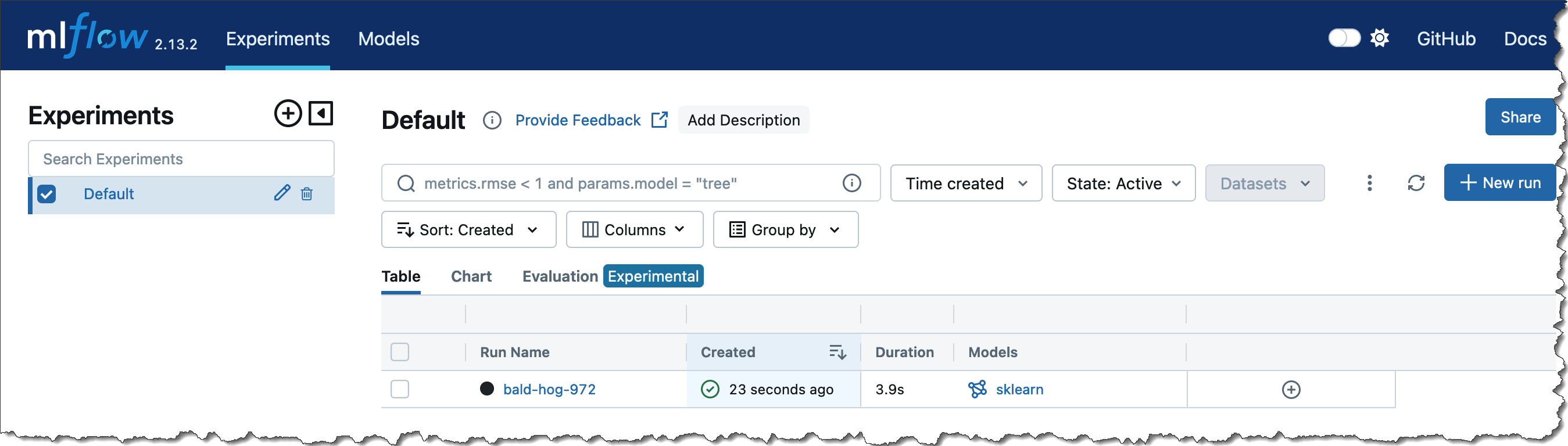 Once you run the notebook shown in Step 2, you will see a new run in the MLflow UI.