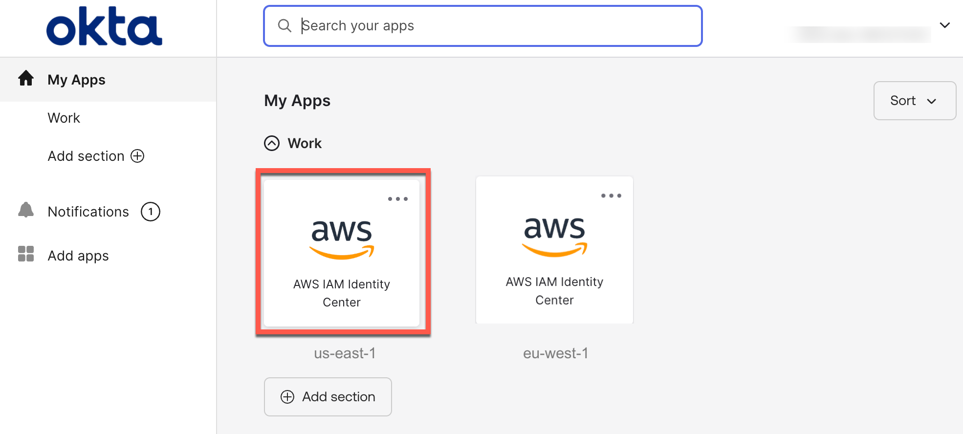 Then, you can create a bookmark application in your identity provider for users to discover the additional Region. This bookmark app functions like a browser bookmark and contains only the URL to the AWS access portal in the additional Region.
