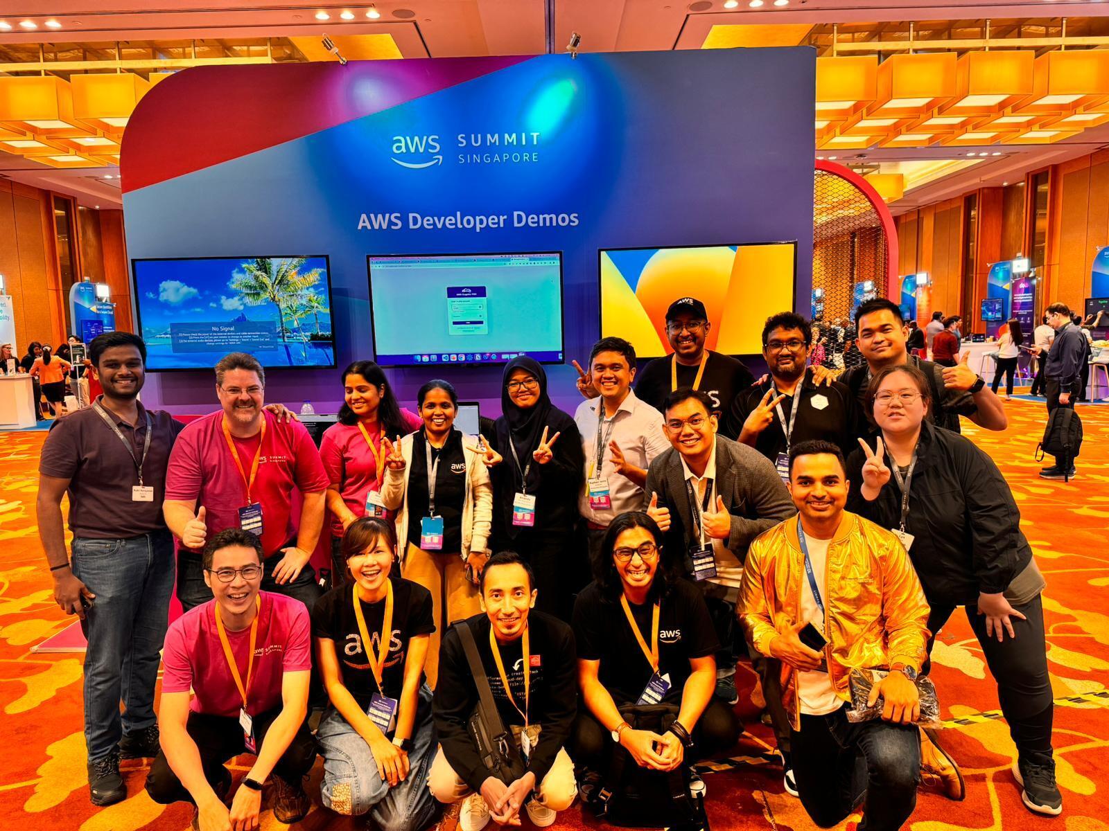 AWS Summit is in full swing around the world, with the most recent one being AWS Summit Singapore! Here is a sneak peek of the AWS staff and ASEAN community members at the Developer Lounge booth. It featured AWS Community speakers giving lightning talks on serverless, Amazon Elastic Kubernetes Service (Amazon EKS), security, generative AI, and more.